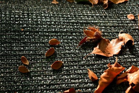 Zbiór żołędzi i bukwi ułatwiają rozłożone na dnie lasu siatki o drobnych oczkach.