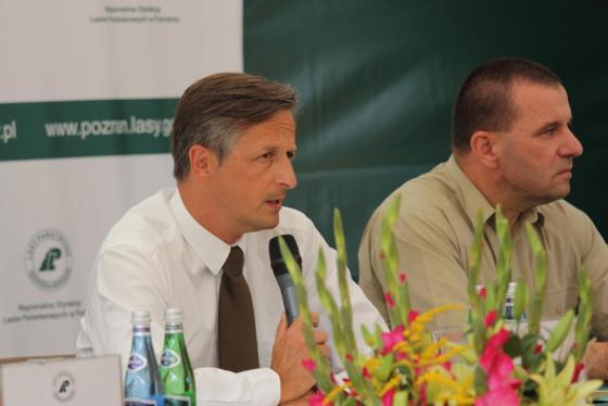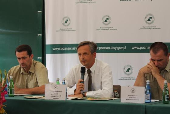Zależało nam na tym, by spotkanie zorganizować na powierzchni klęskowej, gdyż o lesie zawsze lepiej rozmawiać w terenie, zwłaszcza w przypadku, gdy trudno zobrazować tak olbrzymi rozmiar prac – rozpoczął konferencję Tomasz Markiewicz, dyrektor Regionalnej Dyrekcji Lasów Państwowych w Poznaniu. Mierzymy się z sytuacją, która nigdy w historii Lasów Państwowych nie miała miejsca, zwłaszcza na terenie Nadleśnictwa Gniezno, które jest czwartym nadleśnictwem w Polsce pod względem ilości drewna do uprzątnięcia – dodał.
