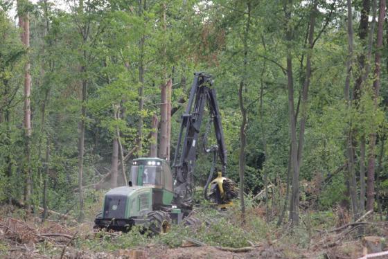 W pracach przez cały rok pomagało leśnikom z poznańskiej dyrekcji 55 Zakładów Usług Leśnych, w tym wiele firm zza granicy. Przyjechały firmy z 10 krajów europejskich, a na naszym terenie pracują m.in. robotnicy z Chorwacji i Niemiec. W takich warunkach jedyną bezpieczną a zarazem szybką metodą pozyskania drewna jest harwester. Jest to również ważne przez wzgląd na zagospodarowanie surowca i jego późniejszą wartość handlową – tłumaczył Markiewicz. Pozyskanie łącznie prowadziło kilkadziesiąt maszyn wielooperacyjnych: 42 harwestery oraz 39 forwardery. By zobrazować metodę pracy podczas trwania konferencji jedna z takich maszyn pracowała na powierzchni klęskowej. Dyrektor Markiewicz zaapelował również o pozyskanie drewna staraniem nabywców. Drewna poklęskowego jest mnóstwo, jest ono również bardzo tanie. W tym momencie pozyskaliśmy staraniem nabywców, czyli przez miejscową ludność, blisko 37 tysięcy m³ drewna opałowego. Przeznaczane jest na cele energetyczne, to jednak kropla w morzu potrzeb – dodał.